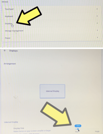 2. Scroll down to “Displays” and set the internal display to “100%”.