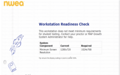 PROBLEM: Scholars see this “Workstation Readiness Check” display when they go to test.mapnwea.org