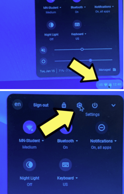 - Go to settings in the Chrome Book after logging in.